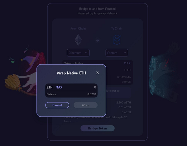 A link in the description reminds you to wrap Ethereum. Native Ethereum will first need to be wrapped to be brought off the Ethereum mainnet. Our SpookySwap Bridge will remind you to first wrap Ethereum and provide a link to do this on the SpookySwap website.